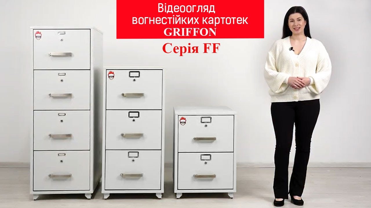 Вогнестійка картотека FF.2D.K призначена для зберігання документів в теках форматом Foolscap та A4. Картотека сертифікована по класу вогнестійкості LFS60P по ДСТУ EN 15659. Тобто після пожежі тривалістю до 60 хвилин вміст картотеки вціліє. Товщина захисного вогнестійкого шару металевого корпусу картотеки з ізоляційним матеріалом всередині складає 55 мм. Для додаткового захисту від впливу вогню під час пожежі отвір між корпусом і ящиками захищено двома контурами термострічки. Під дією високих температур вона розширюється та закупорює отвори між ящиками та корпусом картотеки, запобігаючи проникненню вогню всередину картотеки.